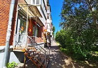 - расположен на первой линии на первом этаже четырёхэтажного жилого дома в престижном Красноглинском районе Самары.