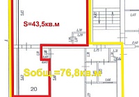 - имеет площадь 43,5 квадратных метров и высоту потолков 3,2 метра, что создаёт ощущение простора и позволяет реализовать самые смелые дизайнерские решения. Можно увеличить площадь помещения до 76,8кв.м.